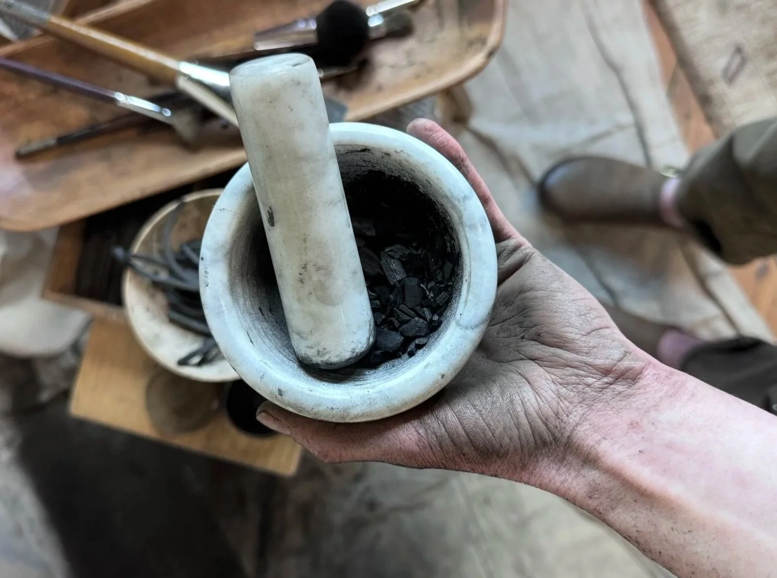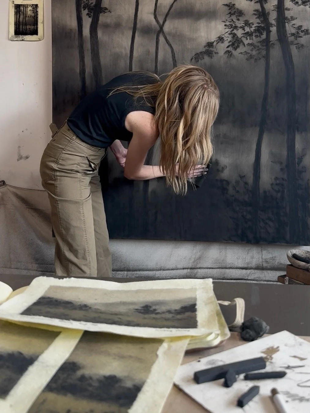 Charcoal and Soft Pastels on Wood